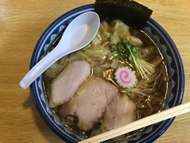 写真は、岸波版ラーメン道から、福島市小倉寺にある白河ラーメン「佐藤」のワンタン麺。既に福島市内ではワンタン麺の名店の風格あり。