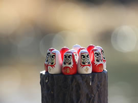 写真は、瞬間の魔術師T.sakumaの野鳥ギャラリーより、横浜市金沢文庫にある “称名寺”の縁起だるま。中にお御籤が入っていたものです。カワイイ~♪ 野鳥ギャラリー「おみくじだるまが並ぶ寺」