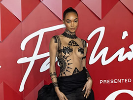 写真は、「葉羽のコーヒーブレイク」から英国ファッション・アワードに登場したジャーダン。今、ファッション界では、こんなけしからぬドレスが大流行(笑)