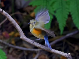 写真は、瞬間の魔術師T.sakumaの野鳥ギャラリーより。ルリビタキの若オスとメスは見分けが難しいのですが、この尾羽の鮮やかさはおそらく若オスではないかと。