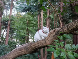 写真は、「恋愛カルタNEXT」の「と」の札で、真魚さんの「問い」の背景画像。猫はどうして木に登りたがるんでしょうかね?
