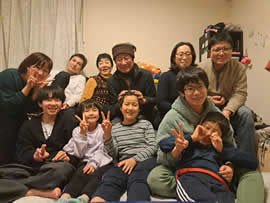 写真は、期間限定公開の通信SECRETからの一枚。お正月に甥っ子のジュンイチ君一家が加わってサオリ宅で大宴会を挙行した時の集合写真。 岸波通信SECRET「恒例、年越し手打ちうどん」