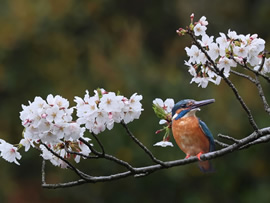 写真は、瞬間の魔術師T.sakumaの野鳥ギャラリーより桜の枝に留まったカワセミ。実はなかなか留まってくれなくて、難儀して撮ったものでした。 野鳥ギャラリー「桜とカワセミ」
