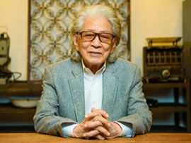 写真は、謎のおじさんアンブレラあつしの「風に吹かれて」より、幾つになってもカッコいい作家五木寛之。歳を重ねてもかくありたいもんですな。