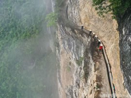 写真は、コーヒーブレイクより中国貴州省の天空用水路「高流天渠」。中国ではトンデモナイ場所で仕事している人達がいるようです。 コーヒーブレイク「エア・ウォーク」