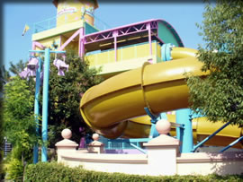 あ、これ、曲がりくねったチューブの中をゴムボートに乗って、滑り降りるウォータースライダーなんですけどね、