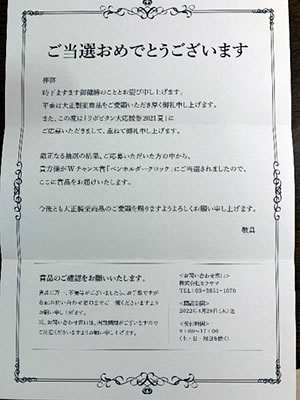というわけで、何度目かのWチャンス賞、いただきましたー。