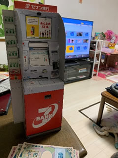 付属のおもちゃのお札、ウィーンって入っていくからね。