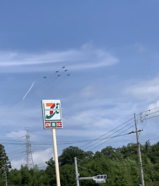 おー!うちの看板とブルーインパルスの共演!