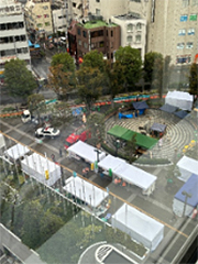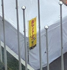 ホテルの横の広場でテントとか設営しています。