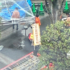 雨の中、何かイベントがあるらしく、