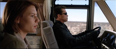 ◆ 序盤で女ターミネーターが車を乗っ取る時、後部座席からシートごと運転者の胸を突き破ってハンドルを握って車を急ターンさせる。