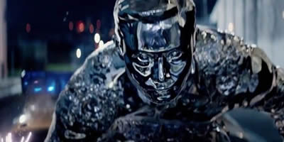 第二作では、第一作の恐怖をさらに増幅するライブメタル(液体金属)製T-1000の登場。