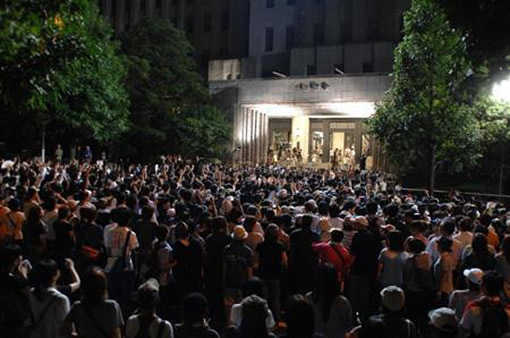 それを目にするや、大阪中の男たち・・・飲んだくれていた男たちや地下鉄の運転手、果ては警察官から消防士まで、全てを投げ捨てて総理の下に集合。