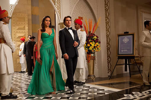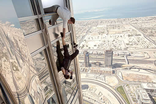 今回の映画では、黒幕たちの取引現場となるドバイの超高層ビル「ブルジュ・ハリファ」におけるトム・クルーズのスタントマン無し&CG無しの体当たり演技が一つの見せ場になっています。