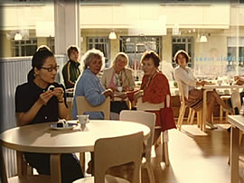 その日の夕方、サチエは書店のカフェで、難しい顔をして『ムーミン谷の夏まつり』を読んでいる日本人女性ミドリ(片桐はいり)に声をかける。