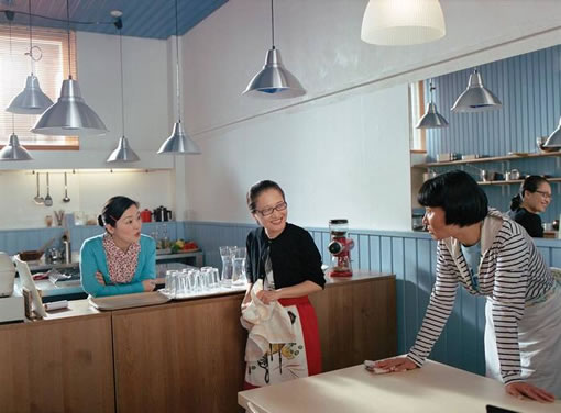 この食堂(実在するらしい)を経営する30代女性のもとに、2人の日本人旅行者の片桐はいり(30代?)、もたいまさこ(50代?)が集って、映画は様々なエピソードを織り交ぜてゆる~く進行する。