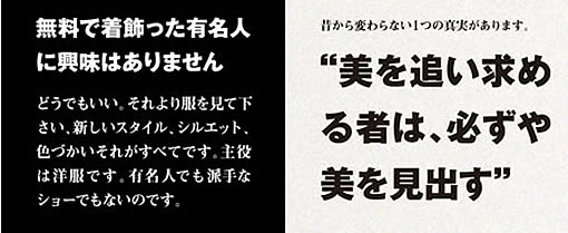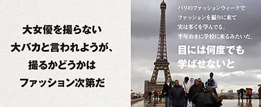 いずれも素晴しいのですが、僕の一番のお気に入りは“大女優を撮らない 大バカと言われようが、撮るかどうかは ファッション次第だ”…うん、これです。