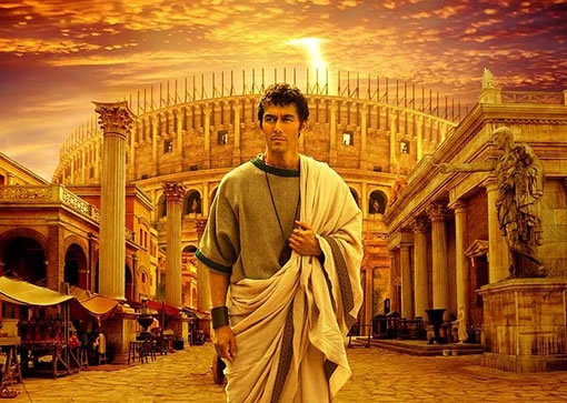 ところがローマに戻ると、そこに居るはずのないケイオニウス(偽物)が現れ、コロッセオで武闘派路線バリバリの大演説を打っています。