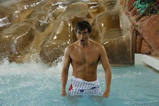 ここで、阿部寛が撮影のために取り組んできた肉体改造の成果が初めて披露されます。