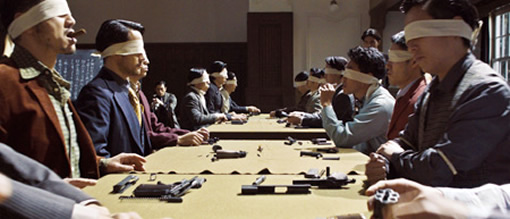刑場で執行官から銃口を向けられたその時、謎の将校が登場。彼は陸軍内の諜報機関である「D機関」の総帥、結城(伊勢谷友介)という人物。「命を救う代わりに自分の下で働け」という流れ。