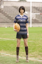 映画の中では、役柄のために本当にそういうコを起用したのだと思い込んでいたのですが、実は彼女、明治大学ラグビー部の公式イメージキャラクターや全国大学ラグビーフットボール選手権大会のイメージモデルをやっていたのですね。