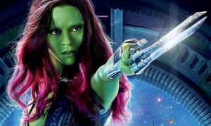 一方、ヒロインであるガモーラは緑色の皮膚をしたキャラクター。