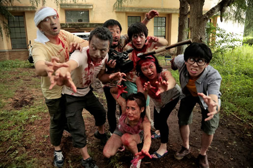 …こんなネタばらしが入ってから、もう一度「ゾンビ映画」の劇中劇撮影シーンが始まるともう大変。