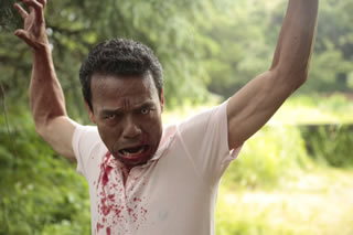 何と撮影クルーの前に本物のゾンビが襲来。野外に居た助監督が腕を引きちぎられ、その腕が建物内に放り込まれる。中に居たのはゾンビ役の青年と襲われ役の女性、そして女性のメイクさん…。