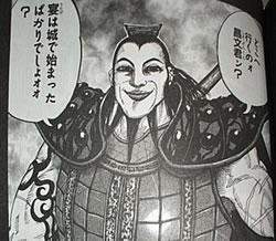 また一方の王騎大将軍ですが、原作では凄いクセ者。人格高潔・思慮深い名将なのですけれど、とにかく見た目が異様。