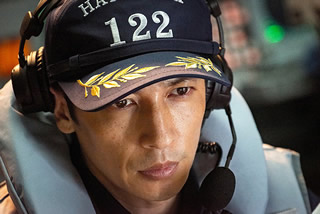 「総員、安全な場所に退避せよ」と命令して自分はあくまでも操艦の責任を取るためにブリッジに残る「はつゆき」の瀬戸艦長(玉木宏)。