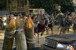 また、ホブスがサモア出身であることが初めて明かされ、「ファミリー」の代わりにホブスの本当のファミリーが、襲い来るハイテク・エティオン部隊にこん棒などローテク武器と気合で闘うというシークエンスも楽しい。