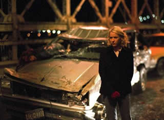 橋の上で追突事故があったらしく、車が大炎上しているのですが、その傍らに事故のことなど全く気にも留めない様子の若い男性が、ターミネーターの出現シーンのような格好でうずくまって動きません。