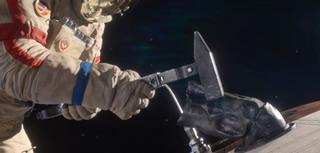 映画の冒頭、宇宙ステーションの修理を行うため船外活動をしている男女の宇宙飛行士が。