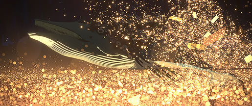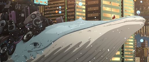 映画の冒頭、仮想世界「U」で歌うベル姫が空飛ぶクジラに乗って登場。