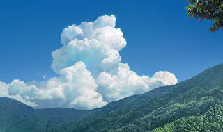 細田監督は自分の作品の季節に夏を選ぶことが多く、そこには必ず入道雲が登場します。