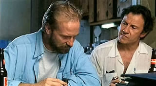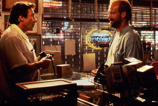 ブルックリンの煙草屋店主オーギー・レン役はハーヴェイ・カイテル(上掲写真右)、そこの常連客の作家ポール・ベンジャミン役(原作者のフルネームはポール・ベンジャミン・オースター)はウィリアム・ハート(上掲写真左)。