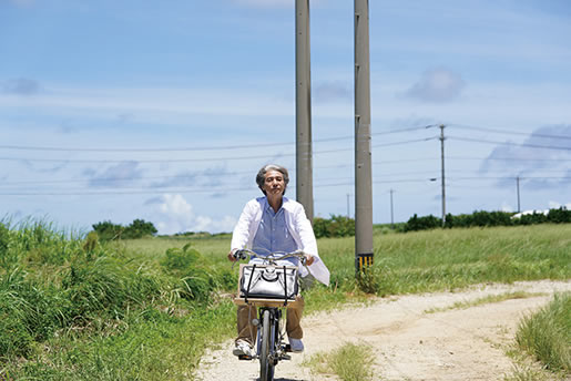 自転車は電動自転車に代わり、16年を経たコト―はすっかり白髪に。撮影は沖縄県の与那国島で行われたが、実に風光明媚な美しい島の風景だ。