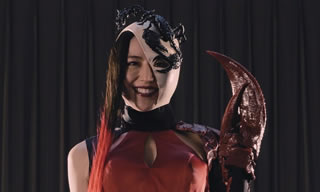 だから、仮面の下、首の後ろんとこから髪の毛出てんのよ。