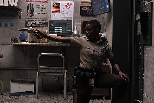 ある夜、ネバダ州の砂漠地帯の警察署に、暴力沙汰を起こした詐欺師テディが連行されてくる。マフィアのボスに命を狙われ避難場所を求めてわざと逮捕されたのだ。しかしマフィアに雇われたスゴ腕の殺し屋ボブが泥酔男に成りすまし留置所のお向かいさんとなったから、さぁ大変。黒人女性の新人警官ヴァレリーの活躍によってボブのテディ抹殺計画はなんとか阻止されるが、マフィアが放った新たな刺客であるサイコパスのアンソニー・ラムが現れて署員を皆殺しにしようとして、小さな警察署はまるで戦場と化す。孤立無援の危機に陥ったヴァレリーと裏社会に生きる3人の男たちによる壮絶な殺し合いを生き抜き、朝を迎えられるのは誰だ!? |
