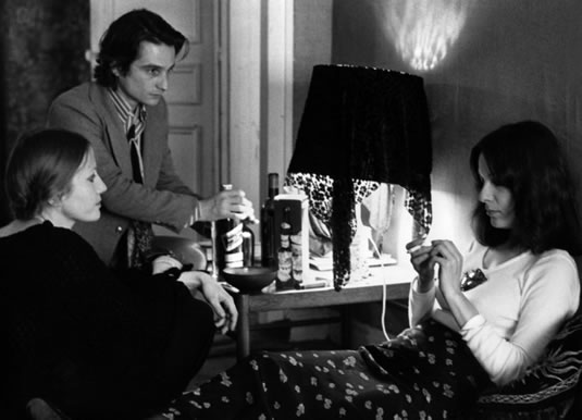 カフェで毎日を無為に送る青年アレクサンドルは、ブティックを経営するマリーの部屋に居候している。彼はつきあっていた女にフラれるとすぐにヴェロニカに声をかけ親しくなる。そのことを報告すると、マリーは一度は嫉妬しながらもすぐに許してしまう。やがて三人の奇妙な共同生活が始まり、皆がベッドを共にすることもありながら、それぞれの孤独、諍い、恐怖が錯綜し、彼らは絶望的に疲れてゆく……。68年の5月革命に敗れた若者たちを端的に捉えた作品と評されるが、ここに表される心象は実に普遍的なものではなかろうか。だからこそ、観る人によってはこの4時間弱が瞬く間に過ぎ去ってしまうのだ。 |