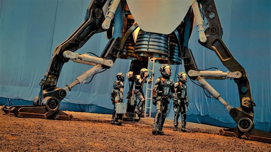 映画の冒頭、火星基地らしきところに突然、流星雨が直撃。その影響で巨大暴風が発生し、基地は崩壊の危機。 離着陸船が無事なうちに宇宙空間に逃れるしかない。
