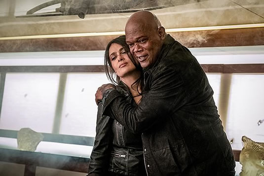 『デッドプール』シリーズのライアン・レイノルズ(マイケル役)と『アベンジャーズ』シリーズのサミュエル・L・ジャクソン(ダリウス役)に加え、前作ではチョイ出演のダリウスの妻ソニアが堂々チームの中心となって登場。