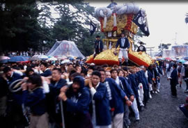 | 先日お話していた 太鼓台の件です・・ 大好きなんです 太鼓台とちょうさは形が違います。 太鼓台のほうがスマートでこちらのほうが好きなんです。 豪華なんです!!写真の見本送りますね!! 多分・・見れば判ると思いますから・・ (現在のような、けんらん豪華なちょうさになったのは、明治二十年以降といわれている。 同町のちょうさは、太鼓台の屋根の先に、「とんぼ」と呼ばれる赤色の結び目が付く。その下に「七重(しちじよう)」と呼ばれる七段重ねの赤色の布団が据え付けられている。 また、金糸銀糸で竜やトラなどを刺しゅうした一片が一・五メートルほどある掛け布団は、かつては他の地域の太鼓台と同様に四方を飾っていたが、現在は前後の二枚になっている。 道路が狭く通行に不便なためとされる。