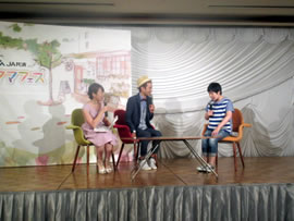 慌てて明は真野の所へ駆け寄ると、どえらいことになったと、重責を感じ始めていたが、真野が心中も知らず、先に両手を掴んでグイッとリードした。