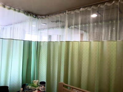 薄いカプセルのような、アゲハ蝶のサナギの薄い皮膜のような、柔らかな表情のカーテン・・・4人部屋の病室の患者用スペースは、そのようなもので4つに仕切り、コーナーも三重になってチラ見えを防ぎ、視覚的にはプライバシーをしっかり守っている。