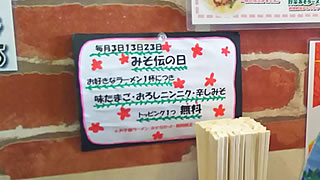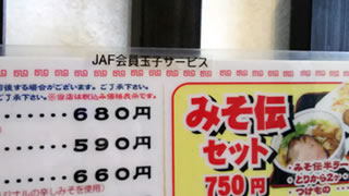 福島内のお食事処の「会員優待施設」だけ見ても、お好み焼き道とん堀やカツ亭、餃子の満腹、牛角、しゃぶしゃぶ温野菜、すりばちラーメンくん太郎などなど。そうした中にこの「ラーメン工房 みそ伝」も入っているのでした。コレはお得!