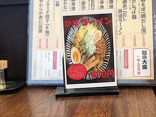 メニュー立ての前に鎮座するのは「かすラーメン」(830円)のプレート。