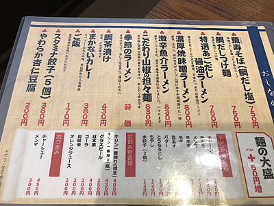 で、入口の右の方には主なメニューが。おや…?