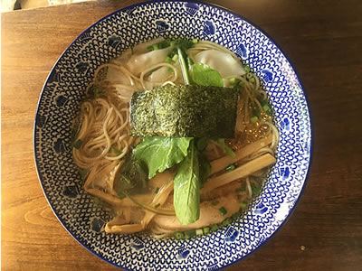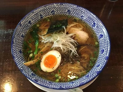 途中、電車を待つ合間に、気になっていた駅近く(早稲町)のラーメン屋「麺庄」(旧店名「あきんどう」)で海老ワンタン麺(850円)の昼飯。